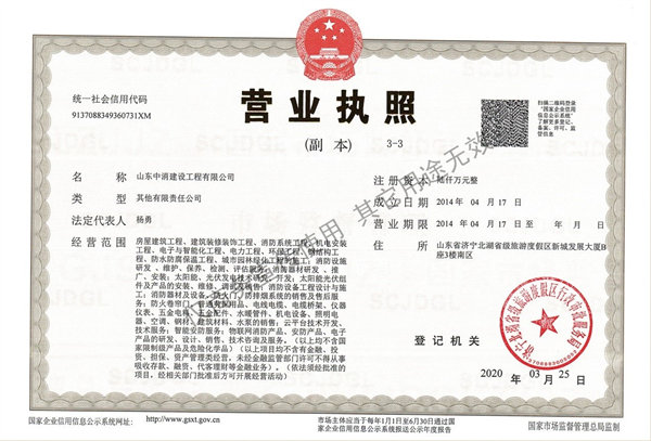 公司成立于2014年,注冊(cè)資金6000萬元,具有獨(dú)立法人資格,集施工、銷售于一體,作為消防技術(shù)協(xié)會(huì)會(huì)長級(jí)單位,立足行業(yè)多年擁有深厚的行業(yè)背景和影響力!主營消防設(shè)備銷售,消防工程設(shè)計(jì)、施工,消防檢測、維保、評(píng)估,施工勞務(wù),建筑、電力、市政、機(jī)電、鋼結(jié)構(gòu)、環(huán)保施工,電子與智能化施工,防水、防腐、保溫施工,建筑裝修、裝飾工程設(shè)計(jì)、施工等業(yè)務(wù)。